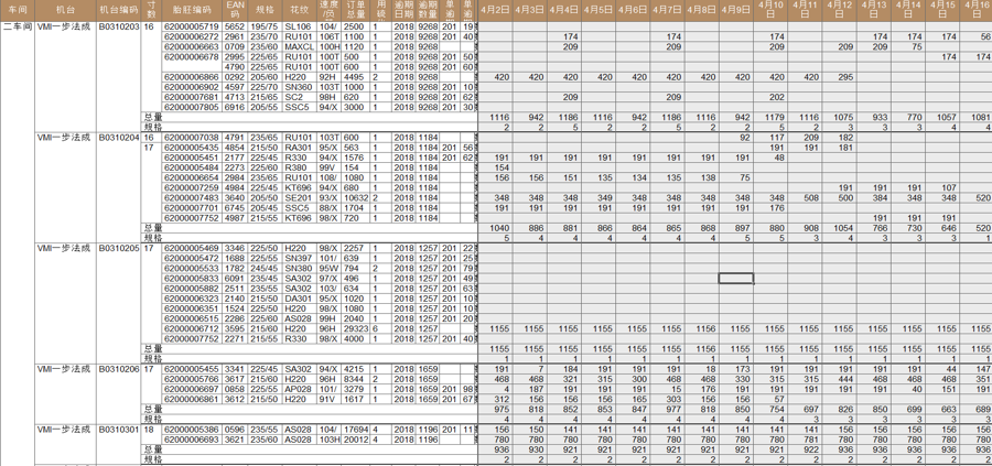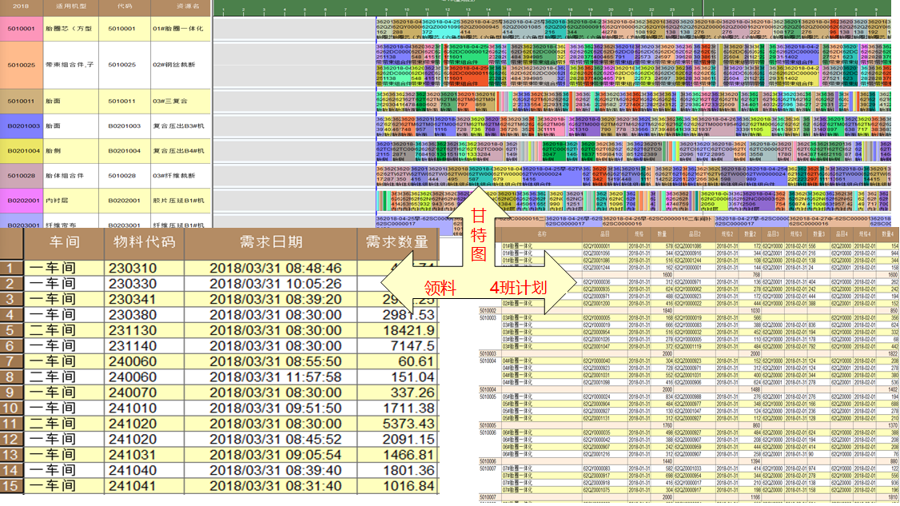 硫化、成型和部件生产步调紧密关联,计划各工序间计划和库存信息汇总一张报表,信息化全方位了解计划动态