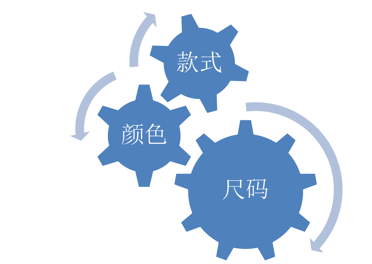 个性化定制的特点是在款式颜色尺码做了模块化的扩展,脱离了传统的 款色码编码的管理,通过模块化的管理形成数据库,支撑柔性化的生产以及智能化的自动化的生产过程