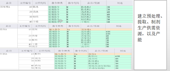③药物品种多、新药开发工作的要求高、难度大、代价高、周期长。现有库存、在执行的生产任务和采购订单难以全盘掌握,难以做到编制的生产计划和采购计划合理、可行;需要的设备和技术工种繁多,能力平衡困难;手工计划非常困难,计划不合理导致加班多,增加公司人工成本。制药行业由于其工艺多且复杂的特点,单纯依靠手工排程,难以满足现代企业快速发展的需要。