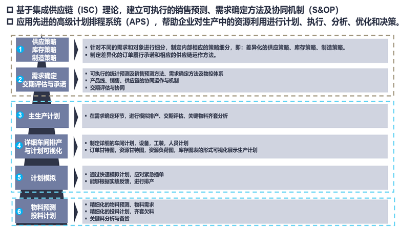 ①供应链计划组织建立:供应链计划组织是S&OP体系的基础,需要销售,生产,采购参与,确保数据可靠和执行效率。