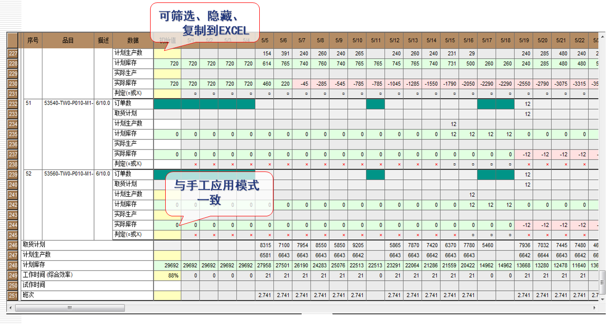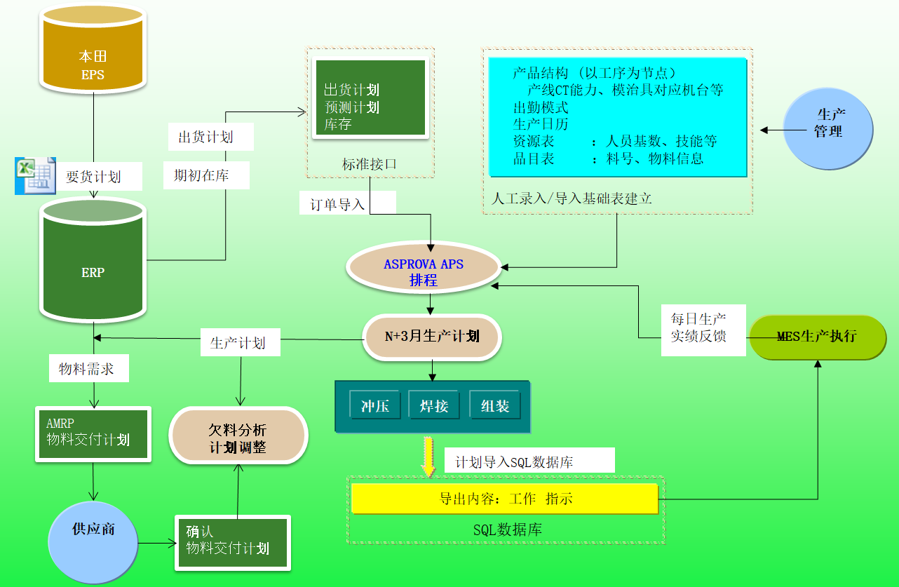 受汽车市场变化的影响,主机厂的配套计划变化很大。汽车零部件企业的生产计划必然随之发生变化。企业接到主机厂配套需求的变更信息后,通过APS一键排程,及时对生产计划进行调整,包括采购需求、生产和委外加工计划,并及时反馈到各管理部门。