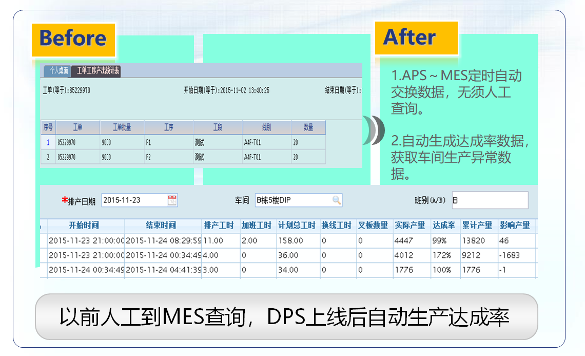 APS的使用,使得MDS、MPS由系统自动下发,DPS计划则自动下发到MES系统,取消了传统邮件传递的形式,实现CRM - APS – ERP - MES数据的实时共享。为生产计划系统化、可视化、透明化管理搭建了平台,并起到了关键作用。