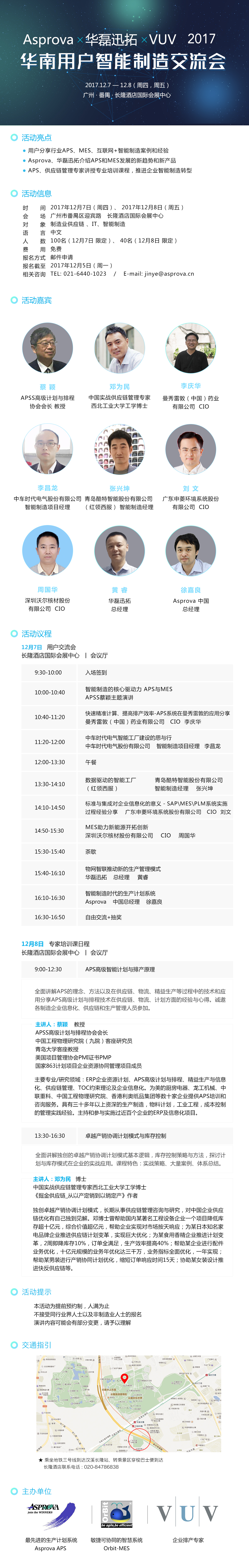 Asprova、华磊、VUV 2017华南用户智能制造交流会报名中