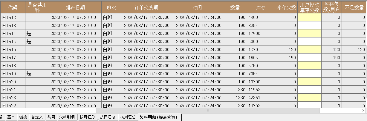 2)基于物料的库存和在途,进行物料分析,提供按需生产的物料需求计划