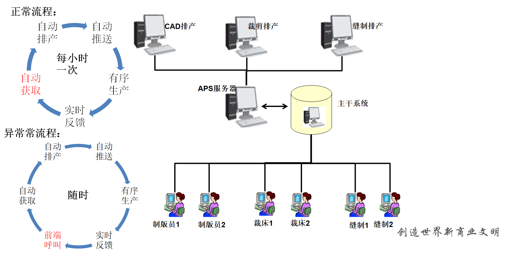 对于红领而言,重要的不是生产设备的自动,而是数据流动的自动化,它实现了对用户需求——订单信息——产品开发——工艺规划——生产制造——使用维护过程中 的人、原材料、机器的每个加工动作和行为的自动、在线、实时、全面的记录,实现了生产全流程各环节数据的自动采集、自动传输、自动处理、自动执行,实现了 把正确的数据、在正确的时间发送给正确的人和机器,从而解决了个性化定制带来的生产不确定性、多样性和复杂性问题。
