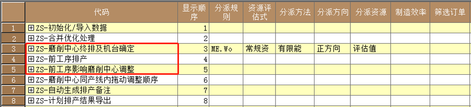 资源表中自定义资源的设备组、制造效率、排产制约条件等参数,把资源的分配逻辑参数化。用户可根据不同的要求、淡旺季对参数进行合理化修订,从而影响计划排产的结果。