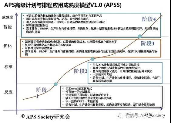 APS系统应用成熟度是一个逐渐实现过程并需要持续改善。每一种行业、每一个企业、每一种制造类型对计划排程的应用的成熟标准可能都不一样。但通过APS优化引擎提高整体链效率与库存流动,优化资源分配,准时交期履约,快速柔性响应现场与订单变化,满足客户价值是我们不懈的追求。